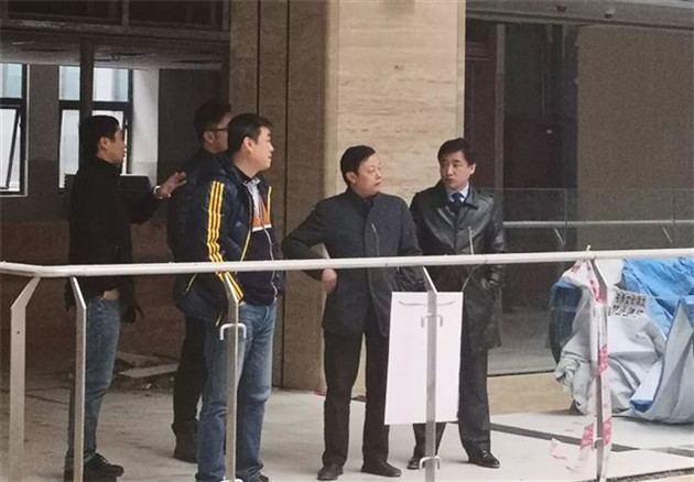 文書記一行深入到新院門診大廳、醫技樓、住院樓、地下室等地考察了新院的建設情況,考察過程中,觀看了西格的醫院門,現場安裝完畢的醫院門無論從質量上,還是顏色搭配上,各領導都給予高度贊揚。